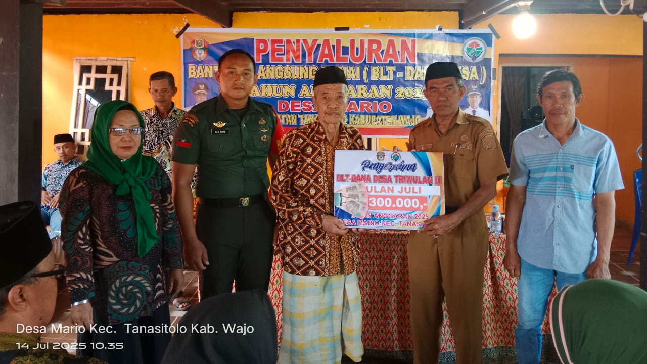 Kepala Desa Mario, H. La Tejjo, S.E., yang menjelaskan bahwa penyaluran BLT merupakan hasil dari verifikasi dan validasi data keluarga penerima manfaat yang telah dilakukan secara transparan dan akuntabel.