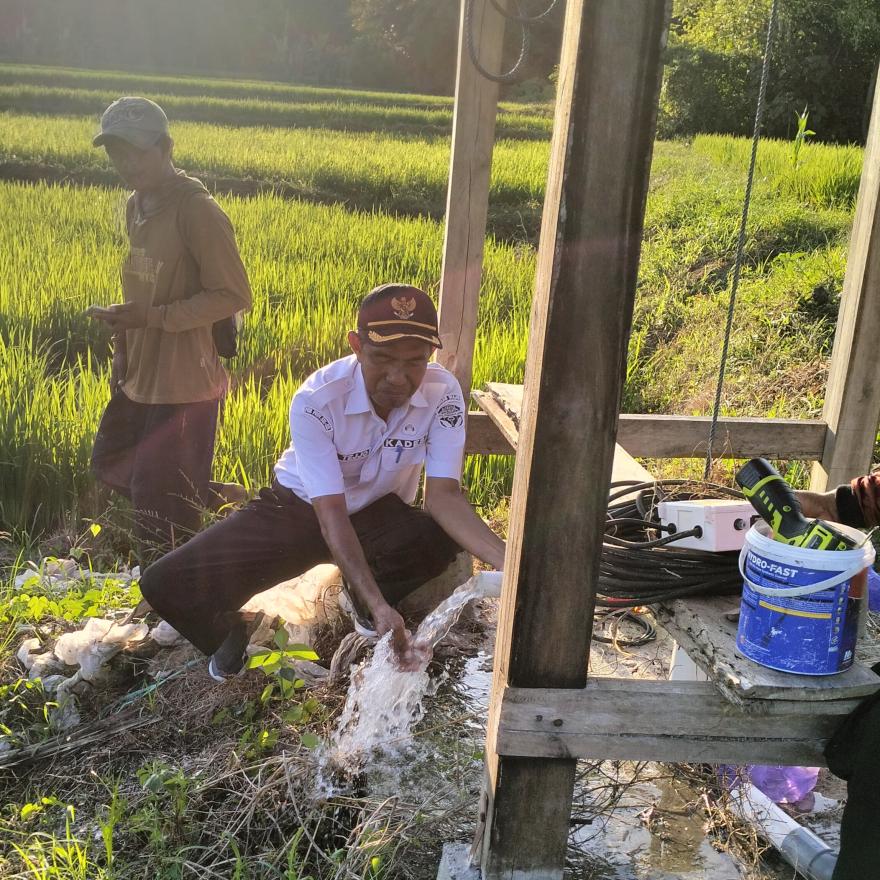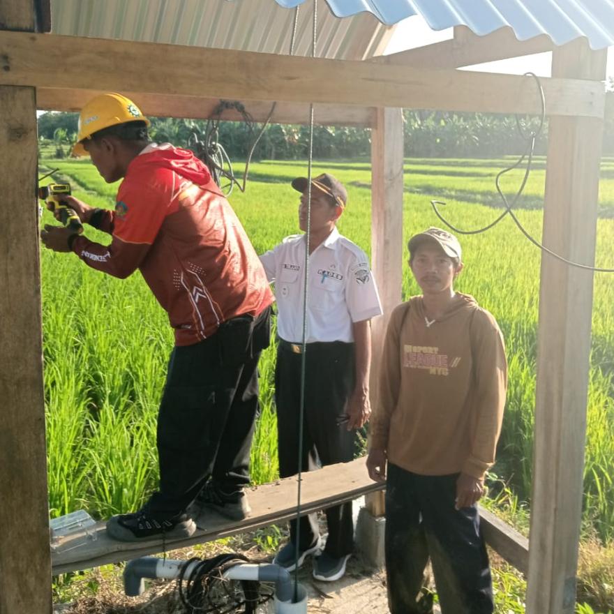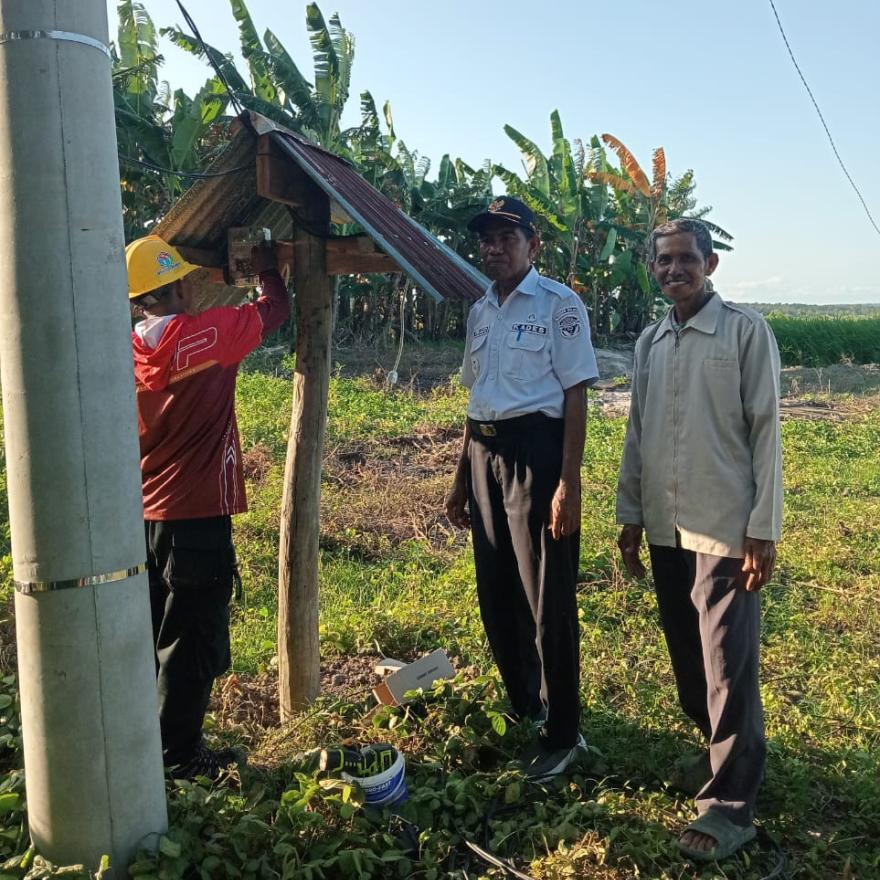 Mario - pada (23/07/2025) Pengoperasian jaringan listrik tiang beton masuk Jl. Tani Abbolangnge Desa Mario 800 meter dan bor listrik sawah (Lisa) dapat mengatasi kekeringan sawah tadah hujan.