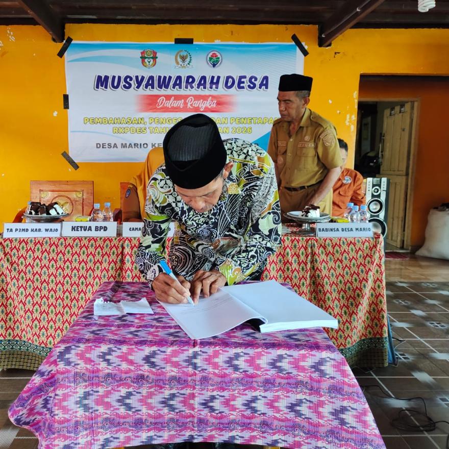 Dalam sambutannya, Kepala Desa Mario, H. La Tejjo, S.E., menyampaikan bahwa RKPDes merupakan dokumen penting yang menjadi acuan pelaksanaan pembangunan desa setiap tahunnya. Ia berharap agar program yang ditetapkan benar-benar menyentuh kebutuhan masyarakat dan mampu meningkatkan kesejahteraan warga.
