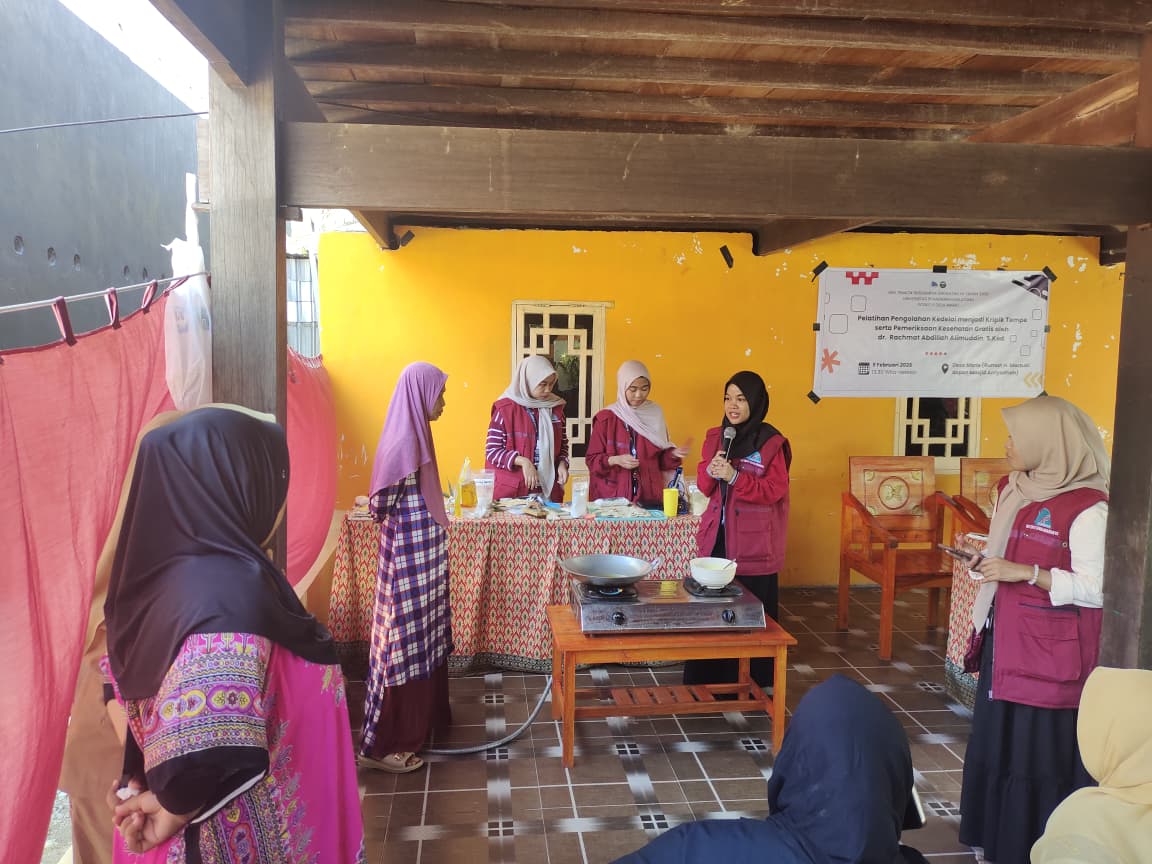 Pelatihan pengolahan kedelai menjadi keripik tempe bertujuan untuk meningkatkan keterampilan masyarakat dalam mengolah bahan pangan lokal agar memiliki nilai tambah dan berpotensi menjadi usaha ekonomi rumah tangga. Dalam kegiatan ini, mahasiswa KKN memberikan penjelasan sekaligus praktik langsung kepada peserta terkait proses pembuatan keripik tempe yang higienis dan bernilai jual.