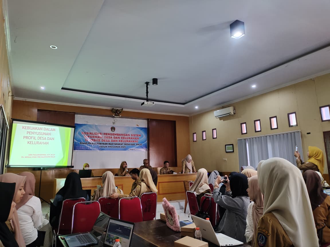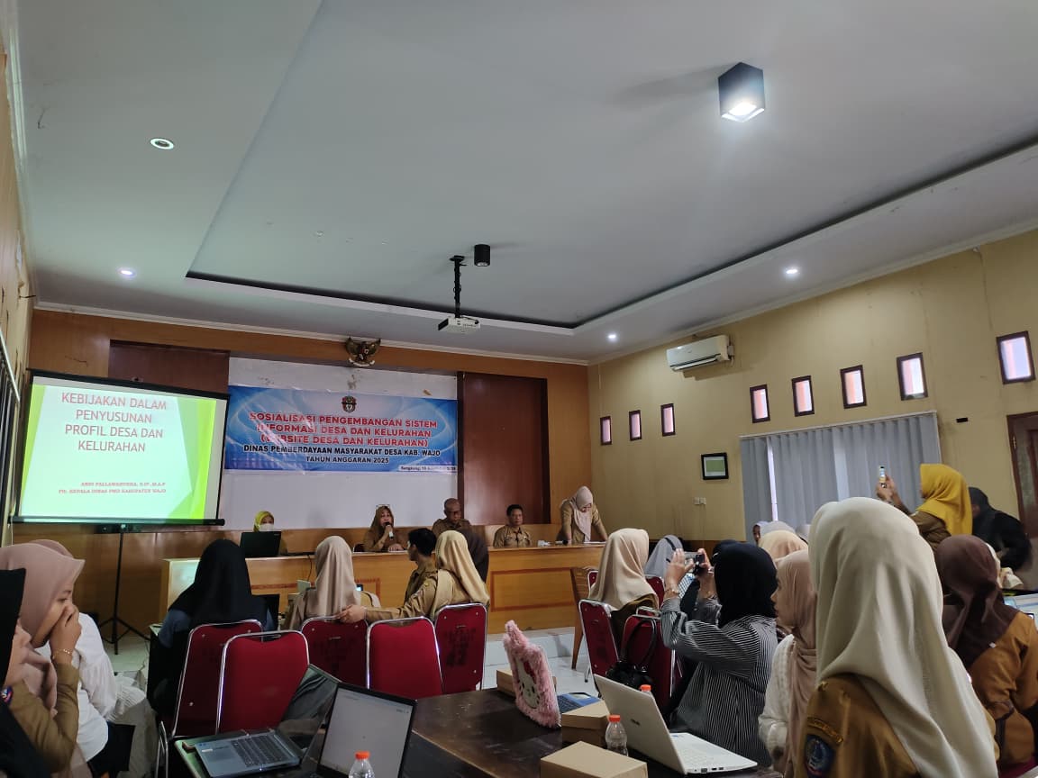 SENGKANG - pada (18/11/2025) Dinas Pemberdayaan Masyarakat dan Desa (PMD) Kabupaten Wajo melaksanakan kegiatan Sosialisasi Pengembangan Sistem Informasi Desa dan Kelurahan (Website Desa dan Kelurahan) untuk Tahun 2025. Kegiatan ini menjadi langkah strategis Pemerintah Kabupaten Wajo dalam memperkuat tata kelola pemerintahan desa berbasis digital guna mewujudkan pelayanan publik yang lebih cepat, transparan, dan akuntabel.