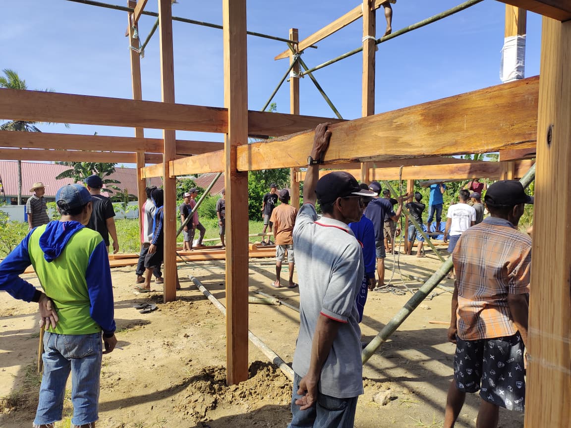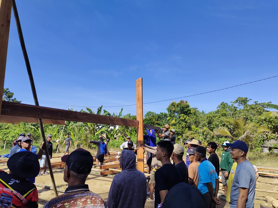 Dalam suasana penuh kekeluargaan, masyarakat tampak antusias bergabung membantu proses pendirian rumah baru tersebut. Doa bersama dan ungkapan syukur pun turut mewarnai jalannya kegiatan, menandai awal yang baik bagi keluarga Andi Aco.